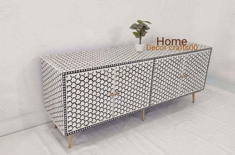 indian handmade Bone Inlay 4 doors media console Table, Bone Inlay media unit