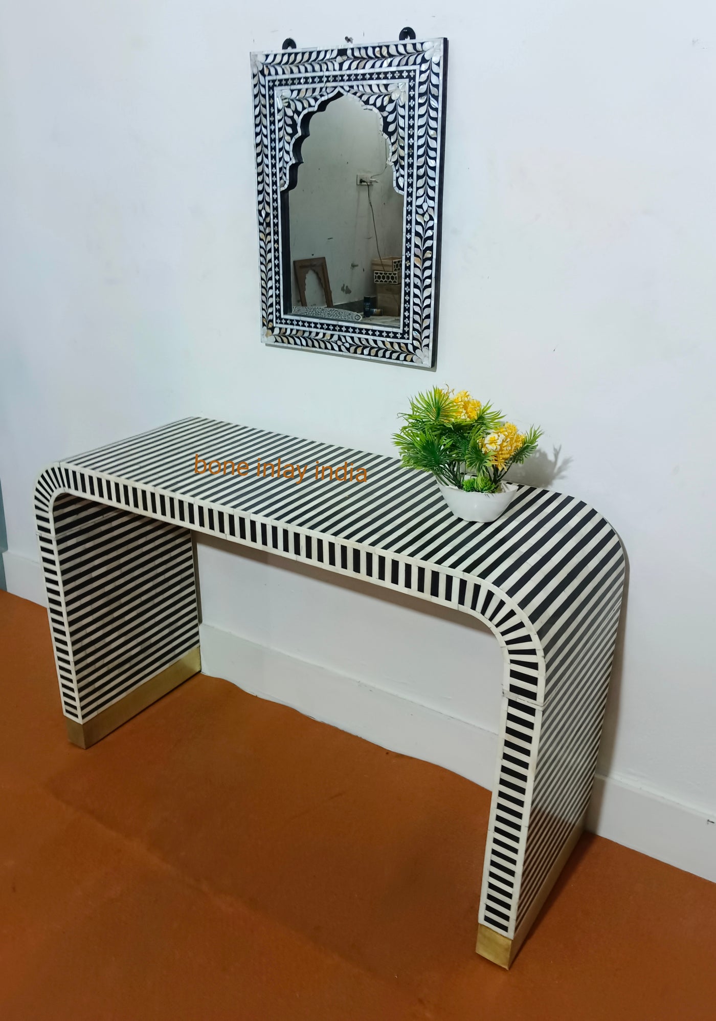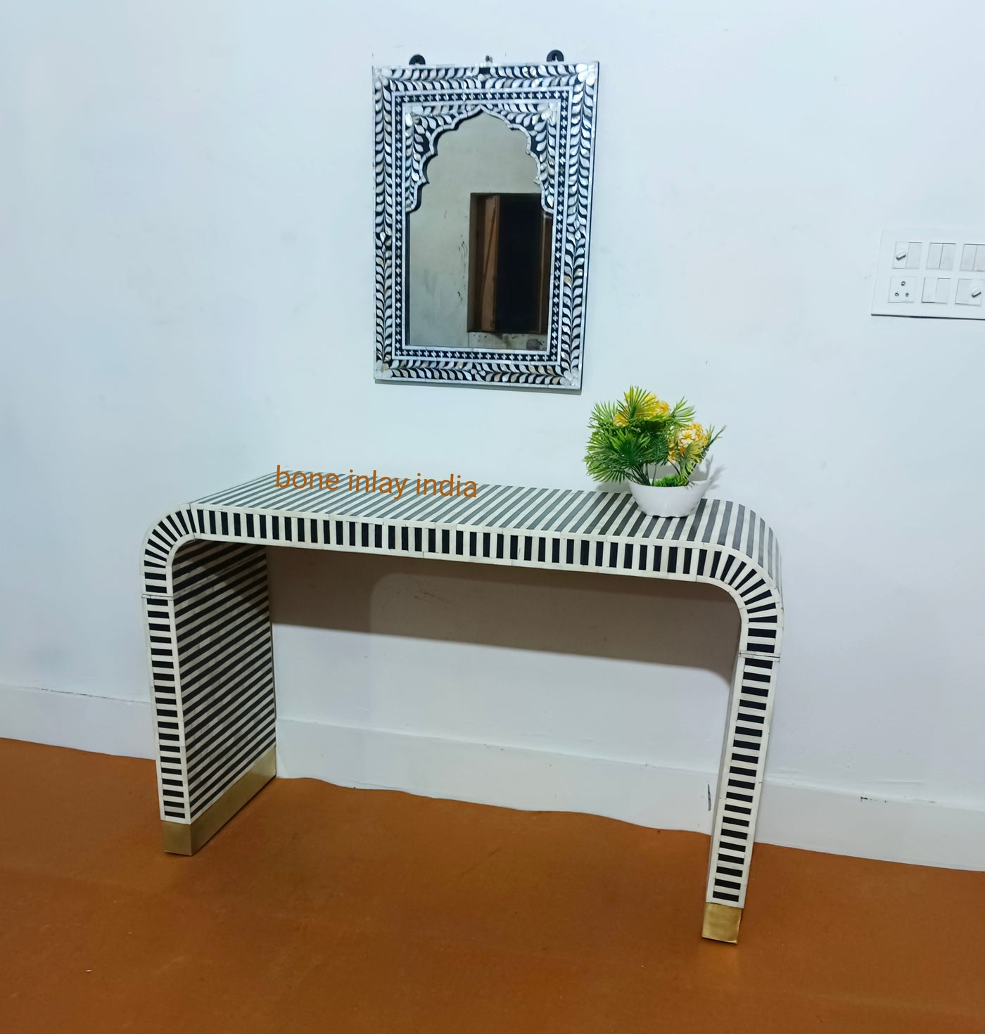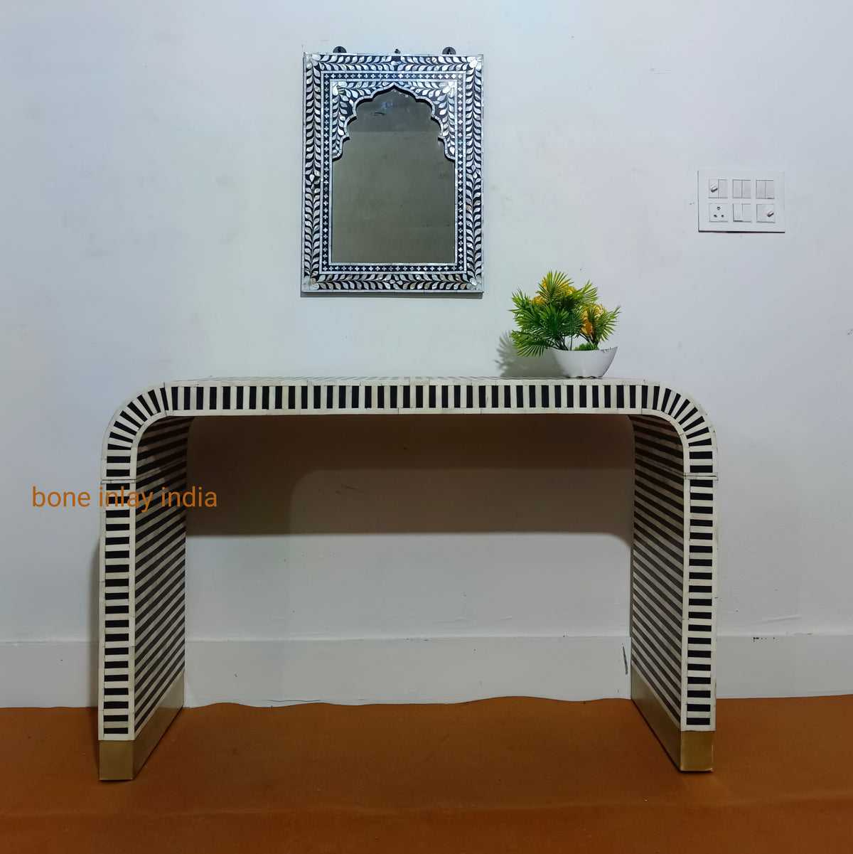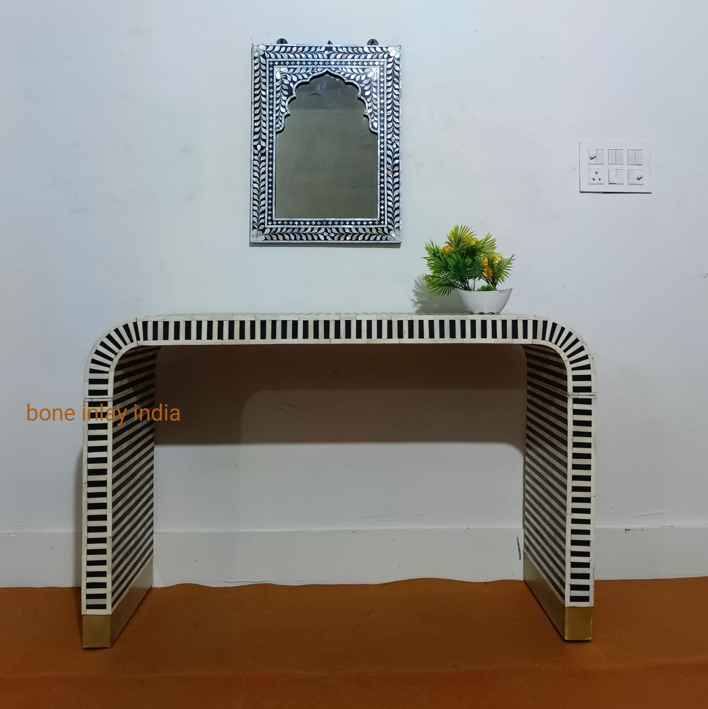 Handcrafted Bone Inlay U-Shape Console Table | Elegant Hallway & Living Room Furniture - 150 / Black
